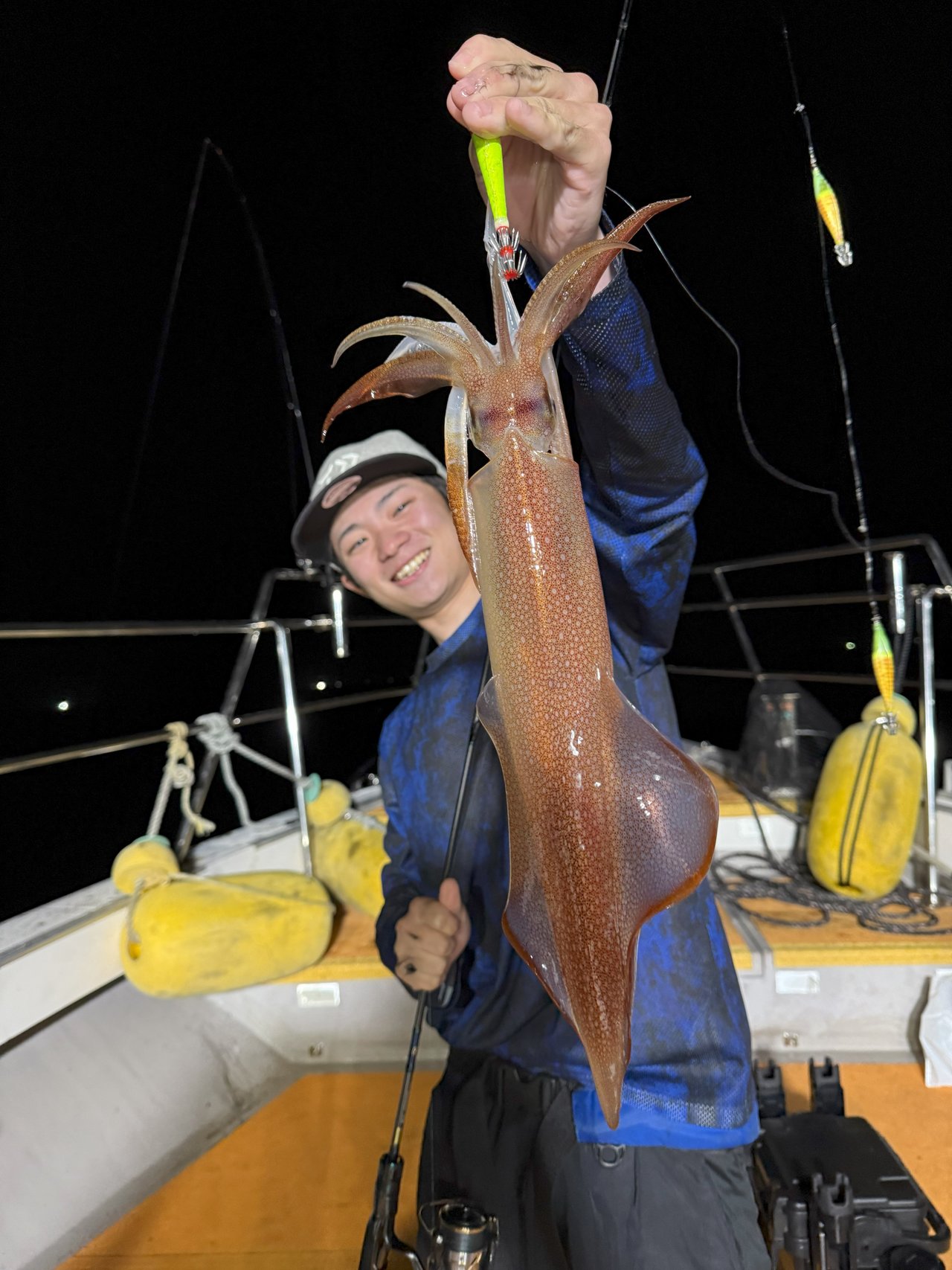 アタリの無ない流しが続いていましたが、なおちんがパラソル級ヤリイカのダボーキャッチしたりと深めのポイントはどうもヤリイカ反応のようでした