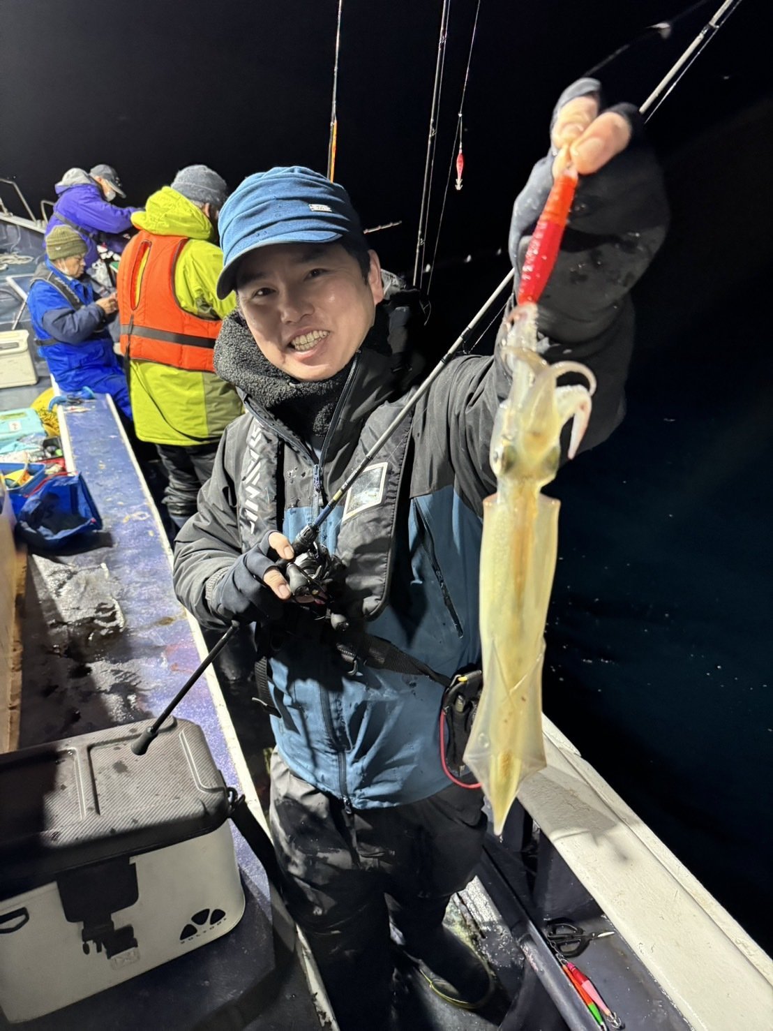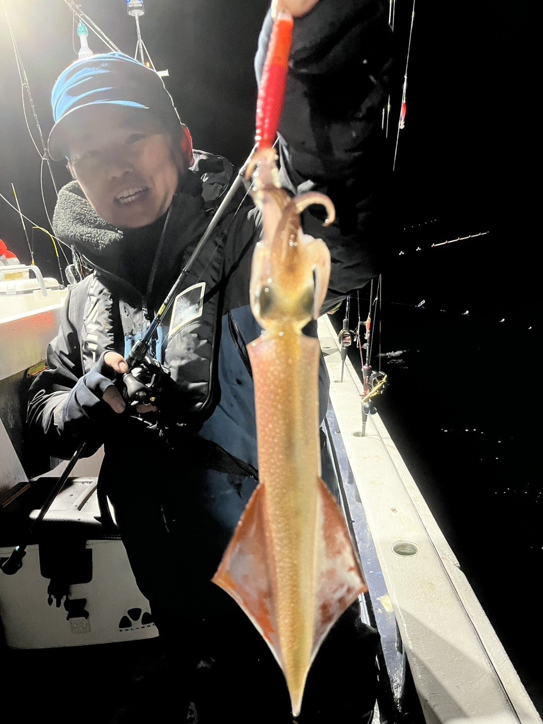 強風で中止続きの中、岩手まで行けば夜釣りは出来そうな予報で急遽大槌町、吉里吉里港から海征丸さんにお世話になりヤリイカ狙い!極寒予報の中、完全防寒装備で自分だけ電動リールにスッテサビキ。本命ヤリイカはなんと1パイのみ!!船中でも2ケタに届かない状況でした。数もサイズもこれから良くなるでしょう!!