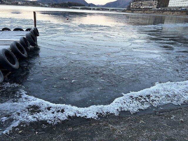 事前情報では、河口湖のワカサギは数日前まで釣れていたのですが湖に氷が張ったタイミングで全く釣れなくなったいう状況・・・・。