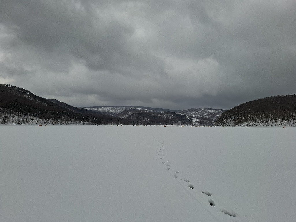 泉BP店、脇神です^^前日に続いて4日は湖畔ホテルさんから湖上へエントリーしました。桧原南部エリアは現在、デカサギまみれ!釣り味満点、おいしさ満点の抱卵ビッグママも居ますよ。今回は穴探しに失敗して釣果が伸びませんでしたが近所にパラダイスがあるのを確信するヒントもあったので機会があればまた穴あけしに行きたいです。湖畔ホテルの降り口は結構な急坂ですのでご注意ください。また、氷のかなり薄いゾーンありました。現時点ではカンジキ・スノーシューは絶対条件です!始まったばかりの氷上を怪我無く楽しみましょう(^O^)ノ