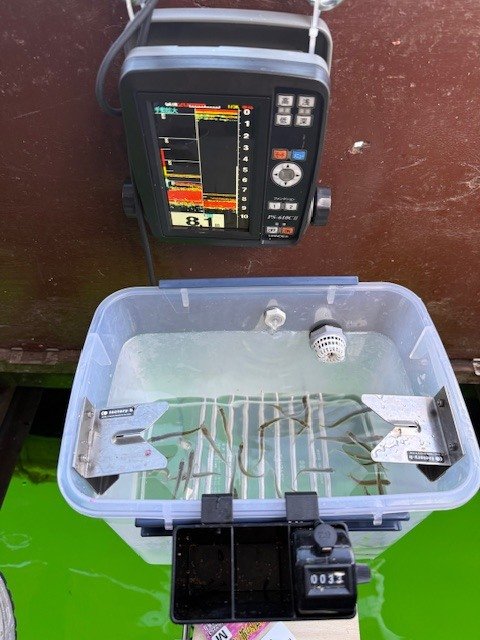 仕掛をセットしている時に良い群れが魚探に映りました。また来るからと落ち着いて準備をしましたが、群れが現れることは無く・・・。