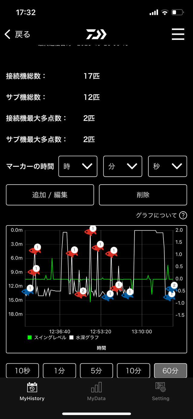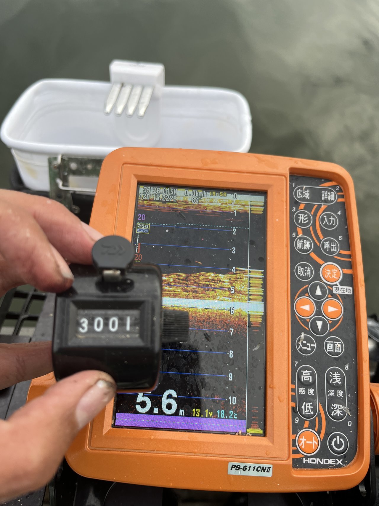 当日は12~15mに魚が出入りしており、まだエサや仕掛けに慣れていない為嫌う傾向が見られました。