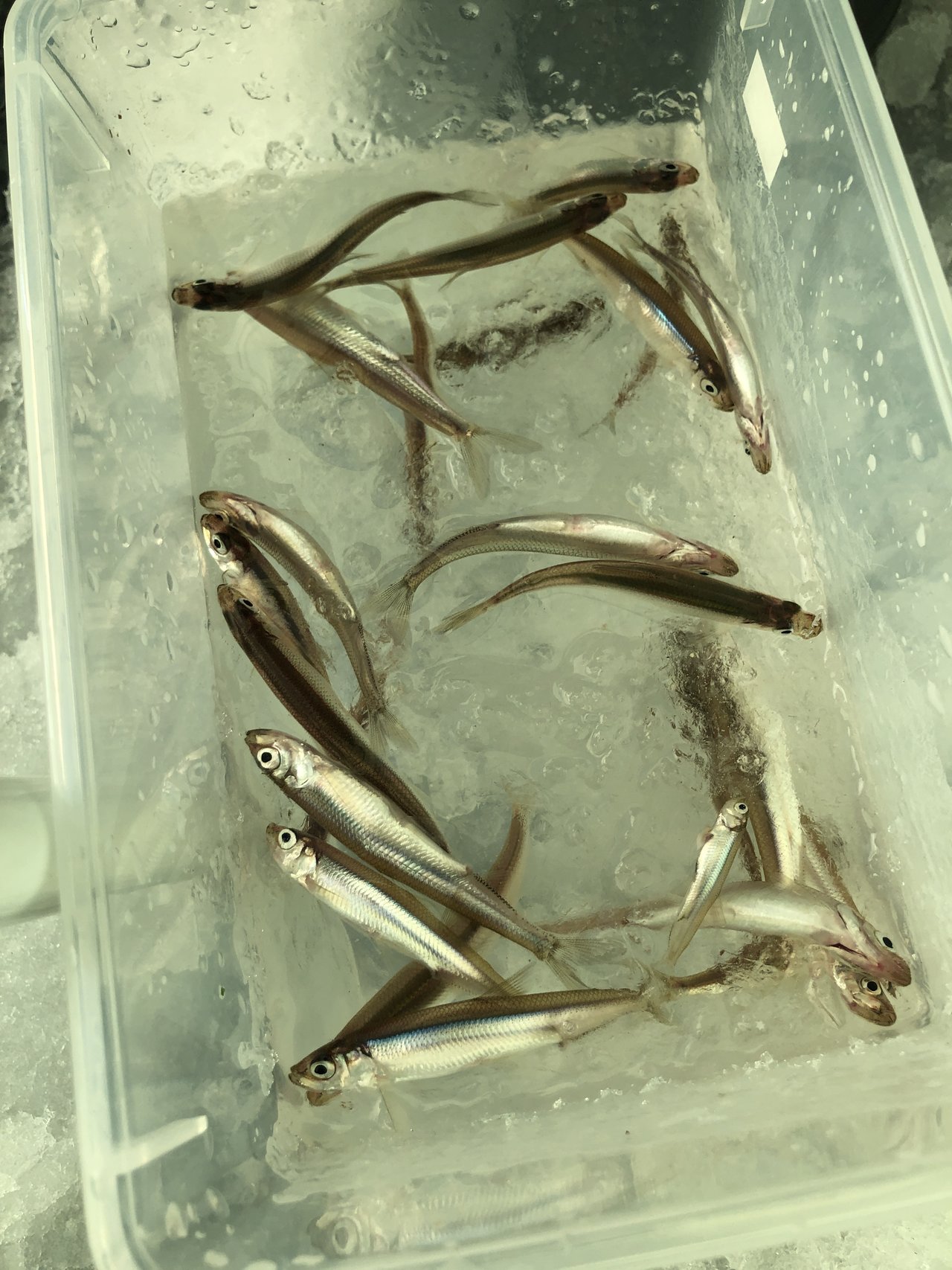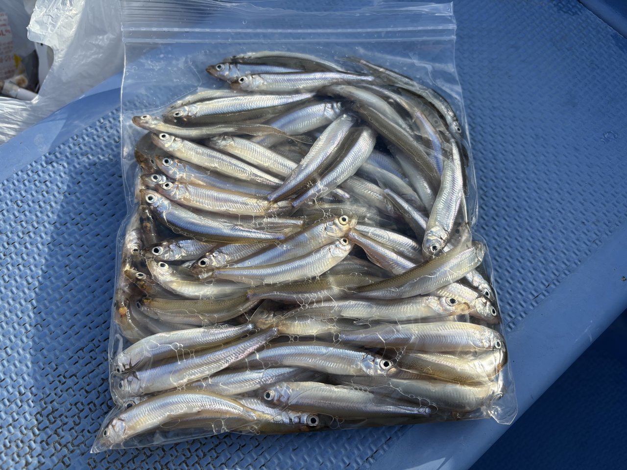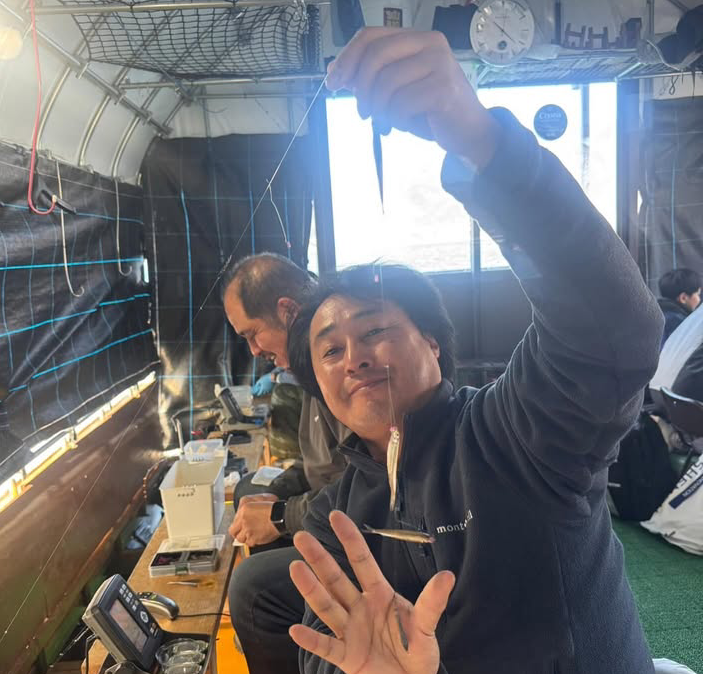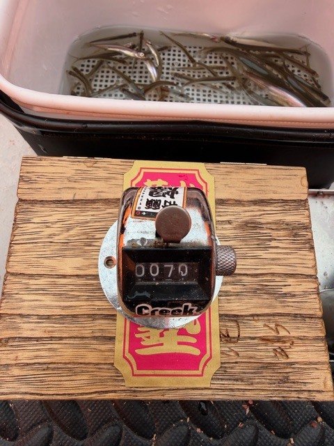 回遊してくるワカサギの数が少ないようで、周りが釣れ出して1~2回釣り上げるとその後しばらく回ってこないので、釣れ出す少ないタイミングでいかに良いエサをキープ出来ているかがポイントだったように感じました。