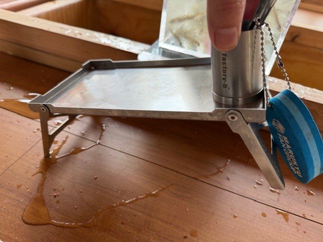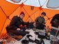ドリルであっという間に4人分の穴をあけ、テントをかぶせていざ実釣開始!