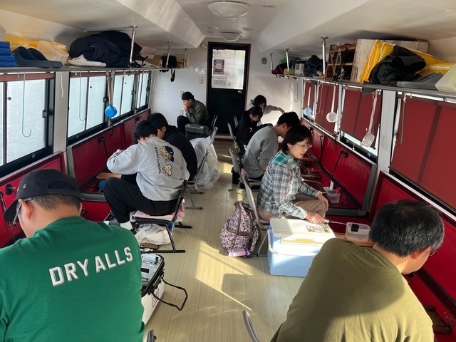 山中湖のしゅうすいやさんよりキャスティングのメンバーとドーム船ワカサギに行ってきました。初めて挑戦するメンバーもおり和気あいあいと楽しんできました。朝は活性良かったものの、一時間くらいするとポツンポツンとアタるような状況に。それでも、エサを付けなおしたり、誘いを入れることでアタリが出てくれ、終日そんなペースで楽しめました。10センチくらいの大きいワカサギも混ざりましたが、今回は小さめの当歳魚が中心だったので仕掛けは1号くらいが良さそです。今期は山中湖のドーム船ワカサギの調子が良いので、ぜひチャレンジしてみて下さい。紅葉もそろそろ見ごろではないかと思いますよ。