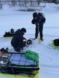 鼻水が凍る中、ポイントまで20分ほど湖を歩き、いざ穴あけ!