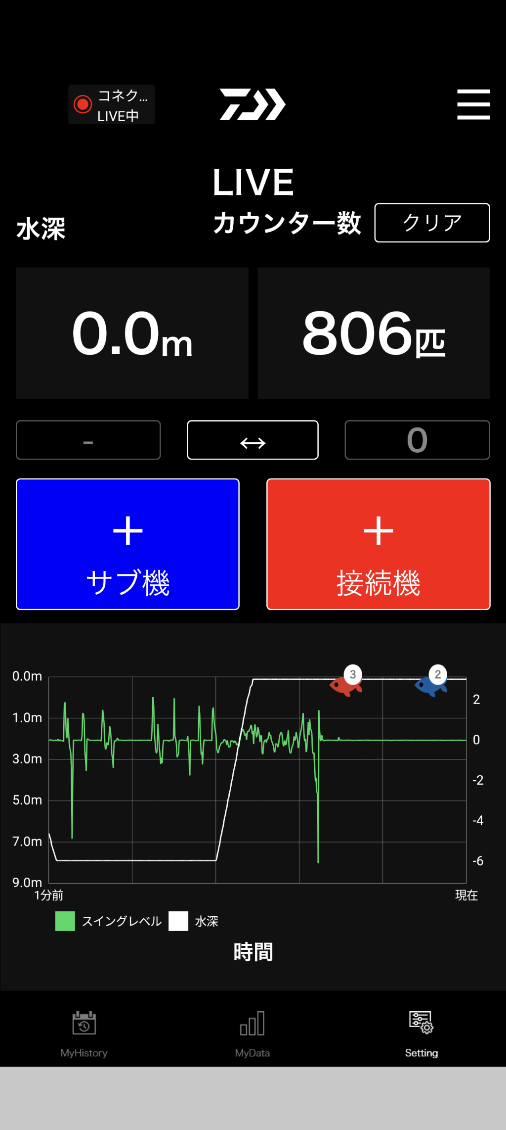 朝一は、外道のハヤの反応が多かったですが、徐々に12~15m付近にワカサギの群れが入り始めました。群れが入ったタイミングで拾い釣っていく感じでした!