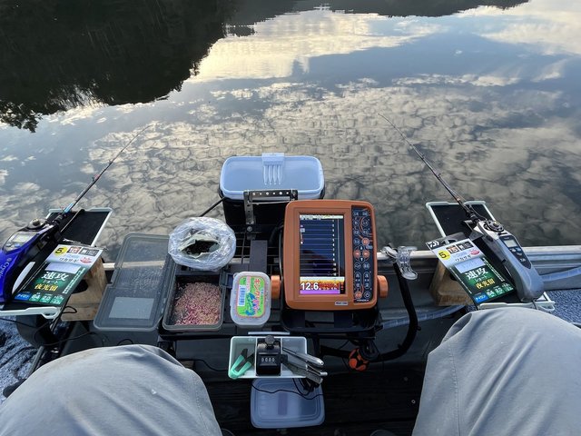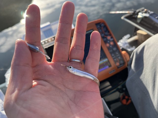 今回のワカサギ釣り修行は今まで気にはなっていたがボートを入れた事が無かった北山湖の「南湖」にチャレンジしてみました。同じ湖ですがワカサギ釣りでは入った事無いエリアだけに見る景色が新鮮☆まずは地形を把握する為にじっくり魚探掛けしアンカーを降ろしたのは南湖59番「湖畔荘前」双子島沖水深12.5m!朝イチの魚探反応は湖底より少し浮いた反応が映っていますが釣れない?たまに底ベッタリを徘徊してるワカサギが釣れる状況でしたが時速30匹程と勢いが無いので再度移動しながら魚探で探るも足の速い群れが多く中々厳しい状況ですが新規開拓は宝探し的な要素がありこれだけで楽しい!お昼頃からようやく湖流が少し発生したタイミングで最初にアンカーを降ろした59番に入り直して粘っていると少しづつ状況が良くなって来て時折2点3点の連掛けにもなる!最近の北山湖のキーワードは湖流ですね!最終258匹と後半伸びてくれたので今後「南湖」の可能性を感じた1日でした。じつはここ南湖に流れ込む川筋は毎年ものすごい数の抱卵したワカサギが産卵の為遡上するエリアでもあります!更なる宝を求めて今後も調査しますね(^^♪