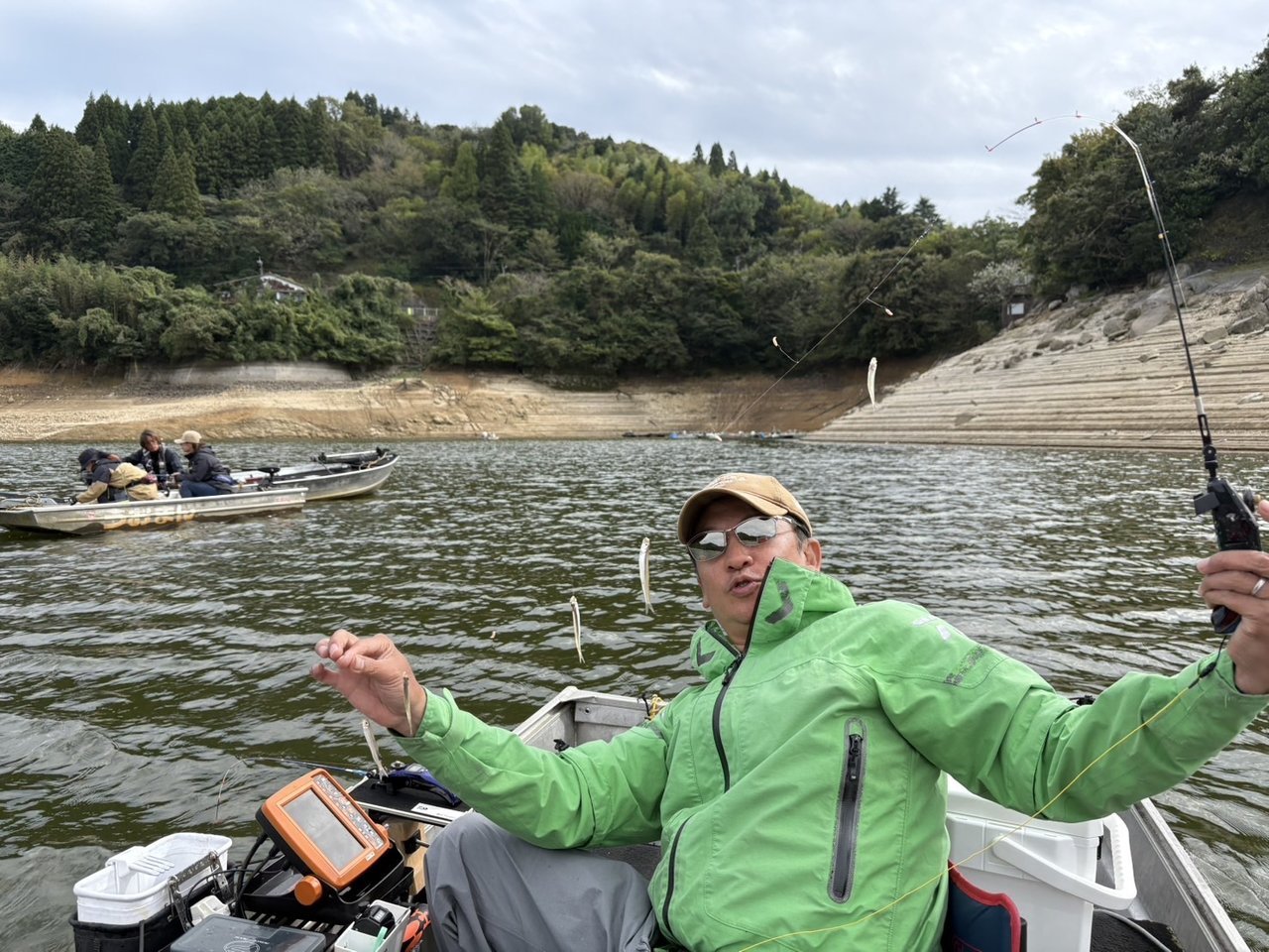 まだまだ水温がガッツリ下がっておらず底付近ってよりかは少し広範囲でワカサギがいるような感じなので個人的には針の間隔の広い仕掛けが良かったのかなと思いました。