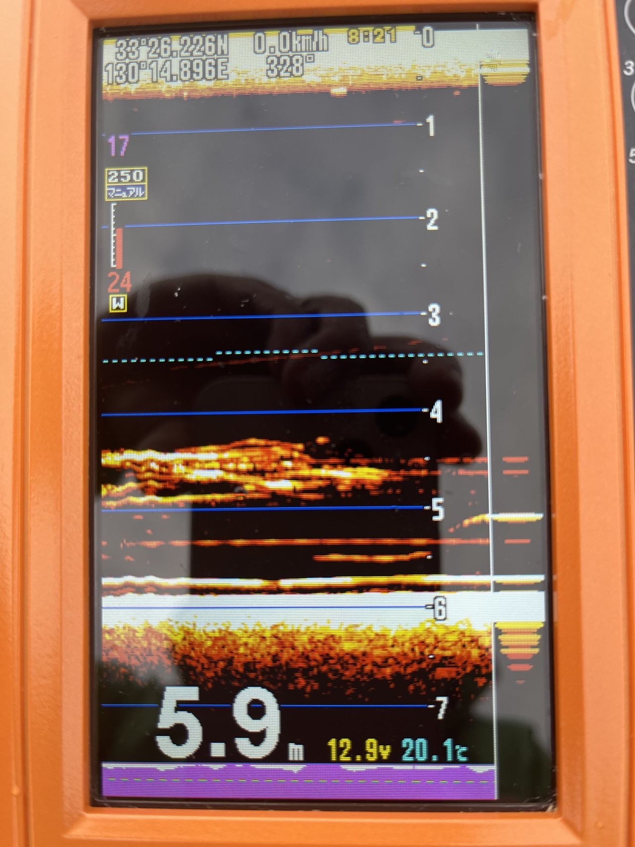 私には難しすぎるので下の反応をポツポツと釣って数を稼ぎますが、どうやら浅い棚に出る反応も他の方はちゃんと釣れる模様。私は定期的に出るこの反応をスルーしてしまいましたがちゃんと拾った方が数は伸びそうです。