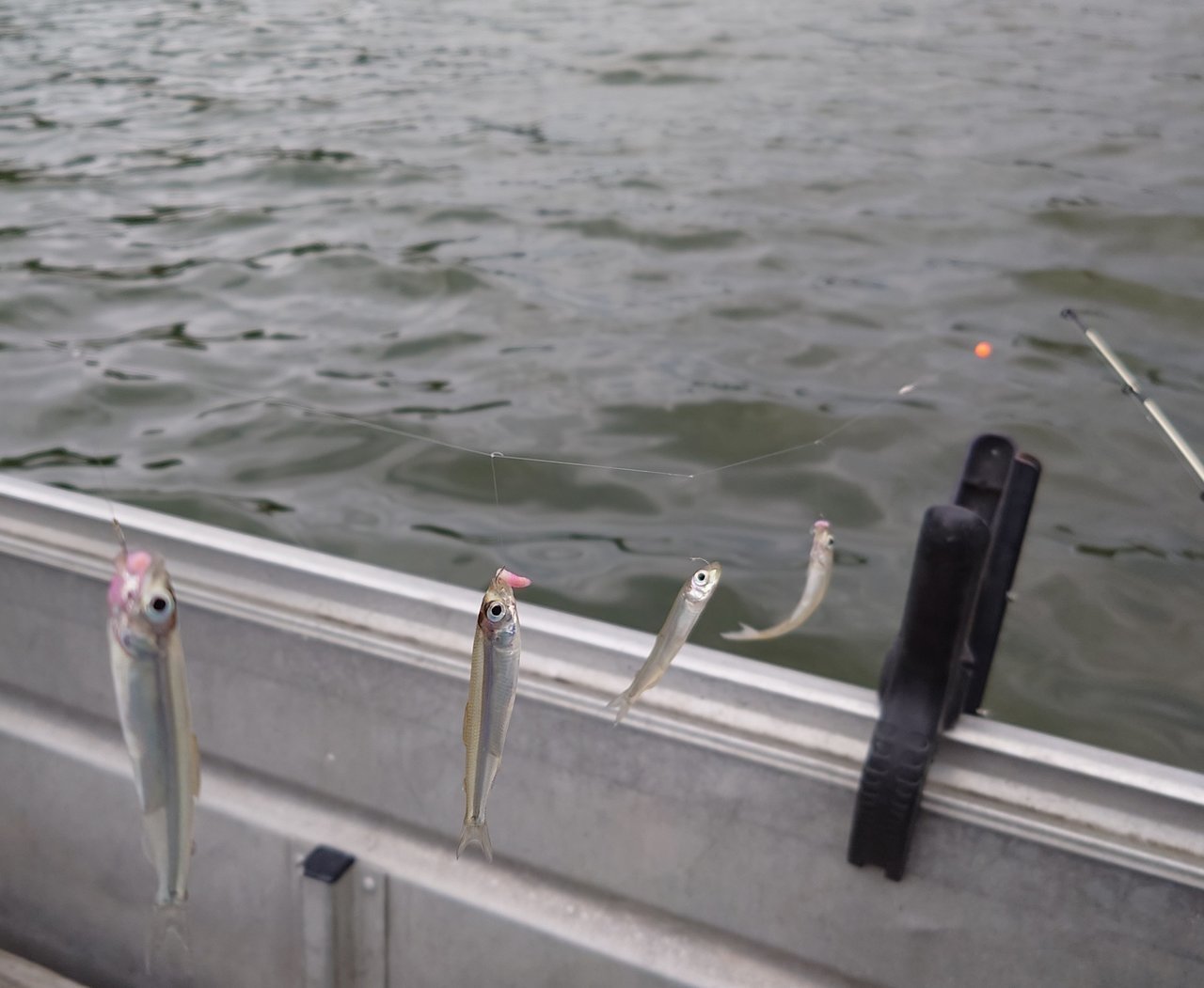 周りの釣れているサイズを見ると当歳魚混じりのようでガッツリ出る反応はコレのよう。