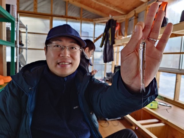 今回は、ワカサギ釣り初挑戦の友人を連れての釣り。