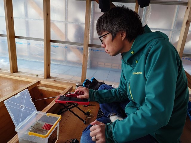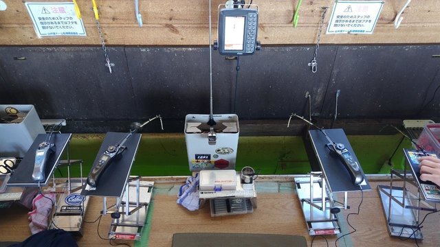タックルはワカサギ番長こと林さんから一式レンタル(本番と同じ仕様)です。魚探2台入ってましたが、流石に使い切らないとの事でホンデックス1台のセッティングです。