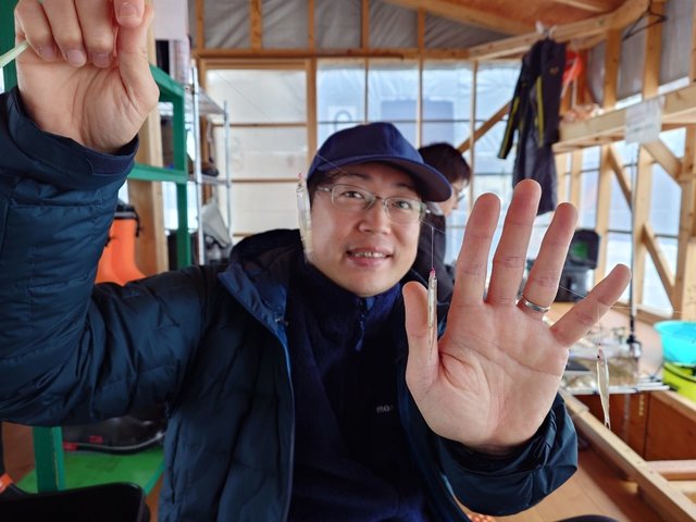 風もあり、雪景色の日は魚の回遊が多く前回よりはたくさん釣れました!