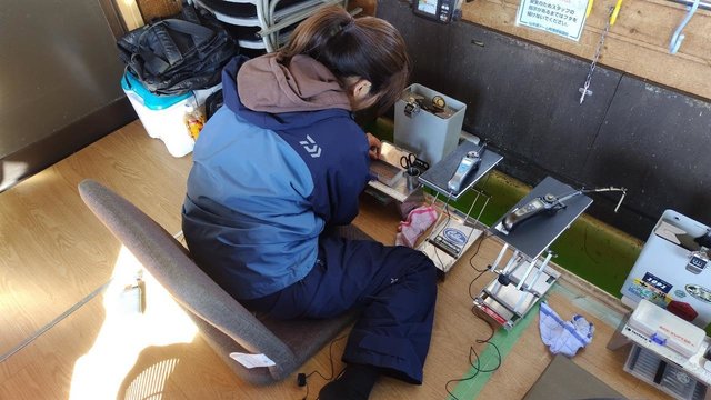 優木さんの武者修行2回目。今回は本番と同じ船宿、つちやさんです。角から2席だったので、迷わず優木さんを角席に。この日は準備~片付けまで1人で完結してもらいます(スパルタ)。