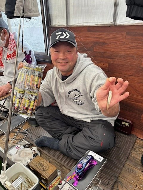 今回は佐賀県三瀬村にある「北山湖・北山ダム」にてレンタルボートを営む【フィッシングセンターうおまん」さん主催のボートワカサギ釣り大会に参加して来ました!大会当日は晴天無風の絶好のコンディション!朝8:30にスタートし北湖15番「向落合角」の水深8~9mに入り約15分程で50匹程釣れたのでこの調子で行けば!と思いましたが急にワカサギの群れが居なくなりピンチ!そこでこの場所を見切り得意な61番「展望台下」に移動。水深9mの湖底にへばりつく良型を1匹また1匹と拾い釣りをしましたが10:30分時点で160匹と伸び悩みましたので再度移動!15番「向落合角」にある7番岩の沖に入り直しこちらも底ベタの拾い釣りでしたが釣れるペースは良く時折分厚い群れも入って多点掛けになることや15cmのデカサギも釣れてなんとか514匹で検量へ!正直今回は表彰台逃したな・・・と諦めていましたが今日の北山湖は全体厳しく!まさかの優勝を獲る事が出来ました(*'▽')今大会にご参加頂いた皆様お疲れ様でした!そして大会を運営頂きました「うおまん」様、大会協賛頂いた各メーカー様!ご協力ありがとうございます。ここ北山湖のワカサギ釣りを全国に広げる為に頑張りますのでこれからもご賛同宜しくお願い致します。にしても最近の北山湖にしては「渋」かったなぁ~!でもこの「渋さ」が面白くてたまりません!正にM男達をくすぐる大会でしたネ(笑)