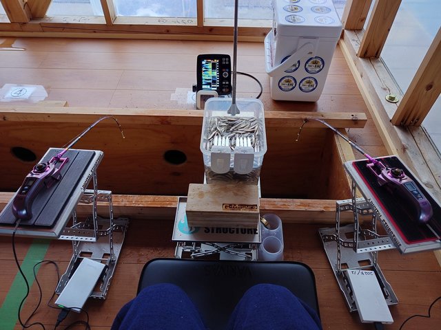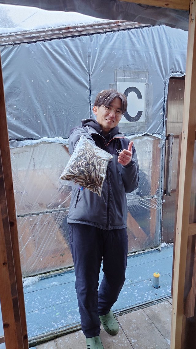 泉バイパス店、脇神です^^12月に入り釣果も上向いてきた花山湖へ行ってきました。当日は寒波予報で県内今年初の暴風雪、早めに出発してもちょうどいい時間に現地到着。道中行きも帰りもイノシシ親子がウロウロしていました。風雪曇天の影響で水中が真っ暗でワカサギの棚が広範囲にボケてしまいどこを狙ったらいいか判断が難しい状況に苦労しましたが、終日マイクロワカサギに翻弄されつつ15時になんとか10束達成。寒さに耐えかねて皆様と一緒にいそいそと撤収いたしました。天気が悪い日は室内もかなり寒いので暖かい格好で。これから爆釣の日々が長く続くと良いですね。釣況詳細は店頭にてお声がけください(^O^)ノ