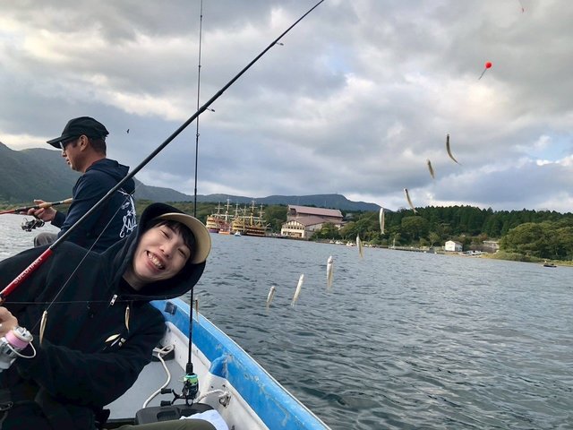 こんにちは(*´∀`)岩槻インター店スタッフ稲垣です。今回は朝霞店スタッフ黒葛原さんと友人2人と一緒に芦ノ湖へジギングでヒメマス狙いと合間にワカサギを釣りに行ってきました!土曜日ということもあり湖上は釣り客だけでなく観光客のスワンボートも多く賑わっていました。