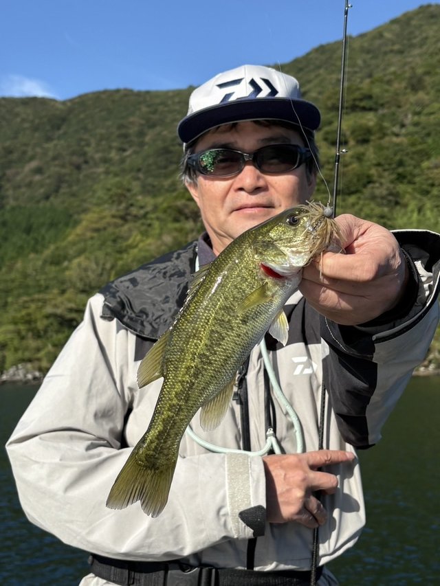 水深3~5mくらいのウィードが絡むところを流していくと早川沖で小型ながらスモラバにてファーストバスをゲット!