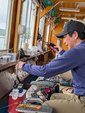 その後は水深あるエリアに移動してジギング探索、ここで多田に念願のブラウントラウトがヒット!