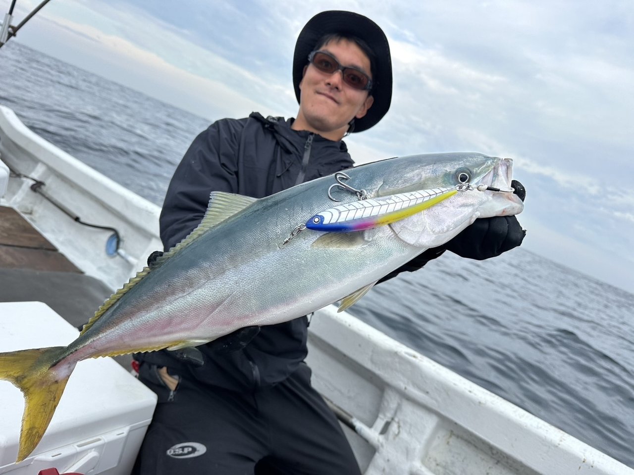 朝一はスロージギング。スパイVなどを投入し様子を窺うものの、アタリ無く。船内では根魚がチラホラ上がっている。数ポイント目で明らかに根魚ではない何かが中層でじゃれてくる。青物?タイミングを見て合わせてみると、中々の引き!30秒くらいファイトしたのちに外れてしまいましたが、ウロコジグに付けたシャウトのツインスパークには魚のウロコが。変なタイミングでフッキングするからボディに刺さってたんですね。あの引きなら納得です。というわけで、次はちゃんとやってやると、HITしたのはワラサ。バッチリすべてのフックが口周りに刺さってました。コンディションが良く、長さの割に筋肉質で丸く、引きが強めでした。