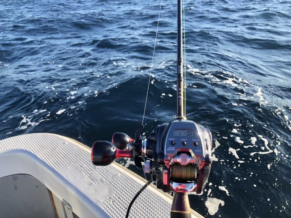 ポイントに到着すると船内の方がメタルマジックを早巻きしていて、サワラを釣りたい気持ちを抑えながら、ジグをしゃくりました。