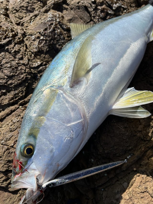 そんな中、肥えたヤズがブレードに!!水深が浅く、ラインも1.2号だったのでヒヤヒヤしましたがバレずに釣れました!