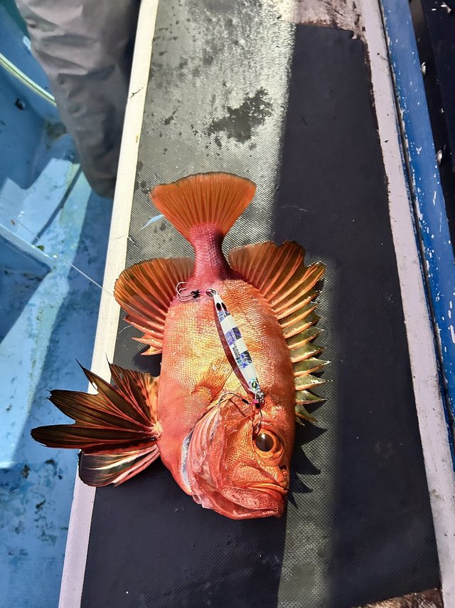すると、チェンジした1投目でアタリがあり、無事にアカアマダイに会えました♪