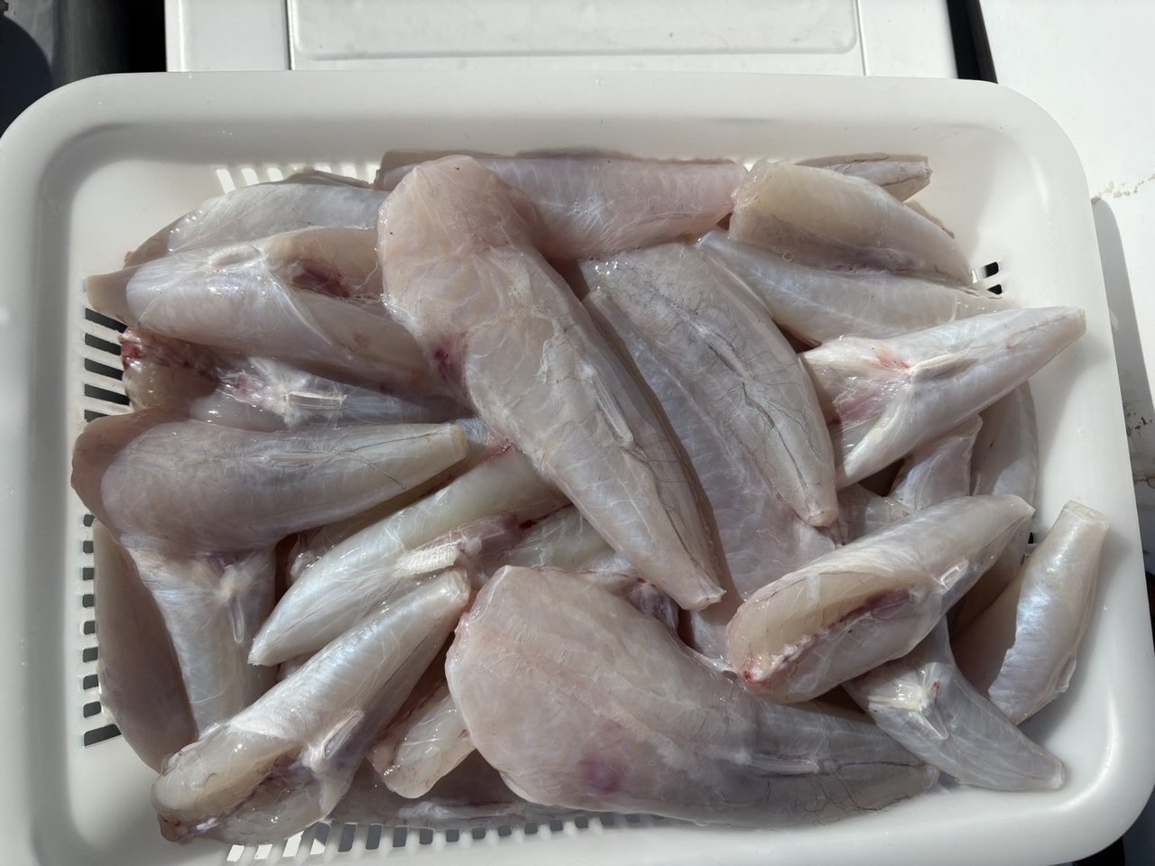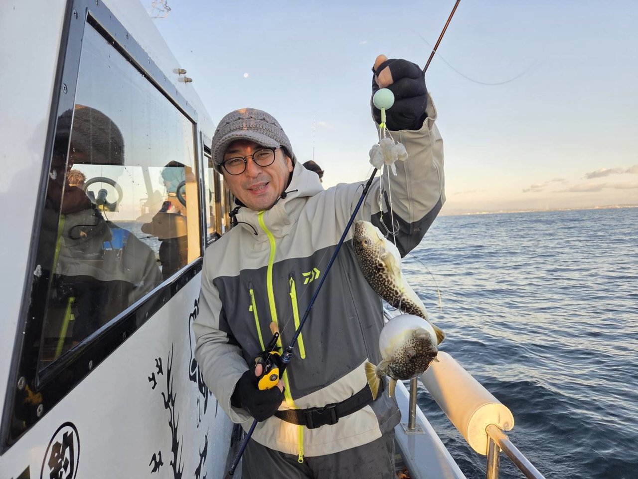 今回も磯崎漁港天祐丸さんにお世話になりまして、カットウフグ・マダイリレー釣りに行ってきました!!当日の朝はベタ凪状態で、フグの活性も上々。深場のポイントに変わってから初の釣行となりましたが、サイズの良いフグを多く釣り上げる事が出来ました。ボトムべったりを探っている方のはマコガレイやイシガレイも掛かっておりました。この日はエビ単体よりもホヤとのミックスにすることで、アタリが早く出やすい状況で、私自身初の50匹オーバーの釣果となりました。