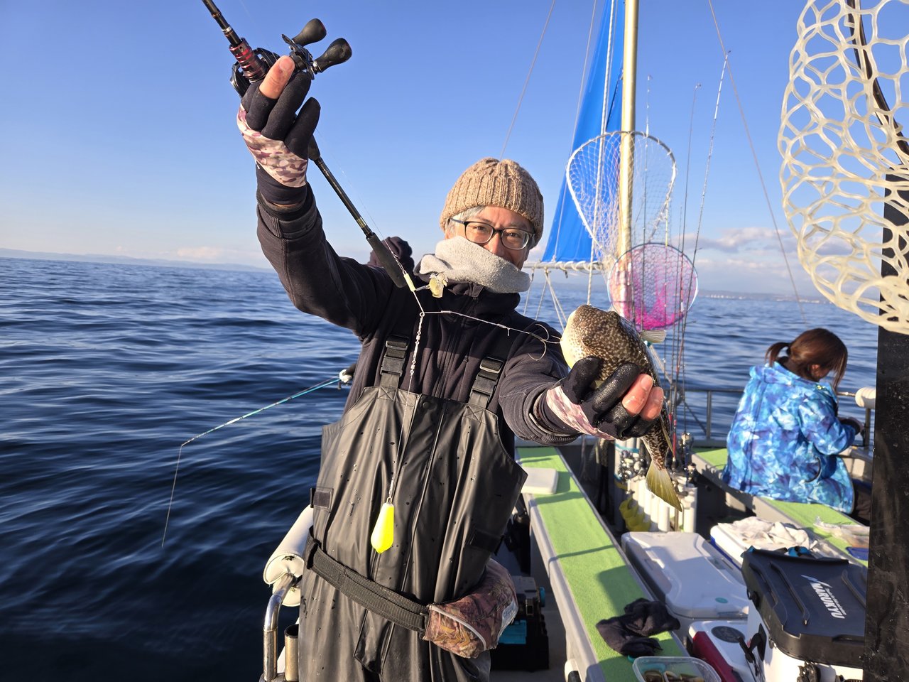 後半戦のマダイ狙いでは、同船のお客様に白子入りのトラフグも掛かっており、イナダ・マダイ・ホウボウなどが釣れておりました。釣味・食味ともに最高です、皆さんも是非カットウフグ釣りに行ってみてはいかがでしょうか。絶対にはまりますよ~。