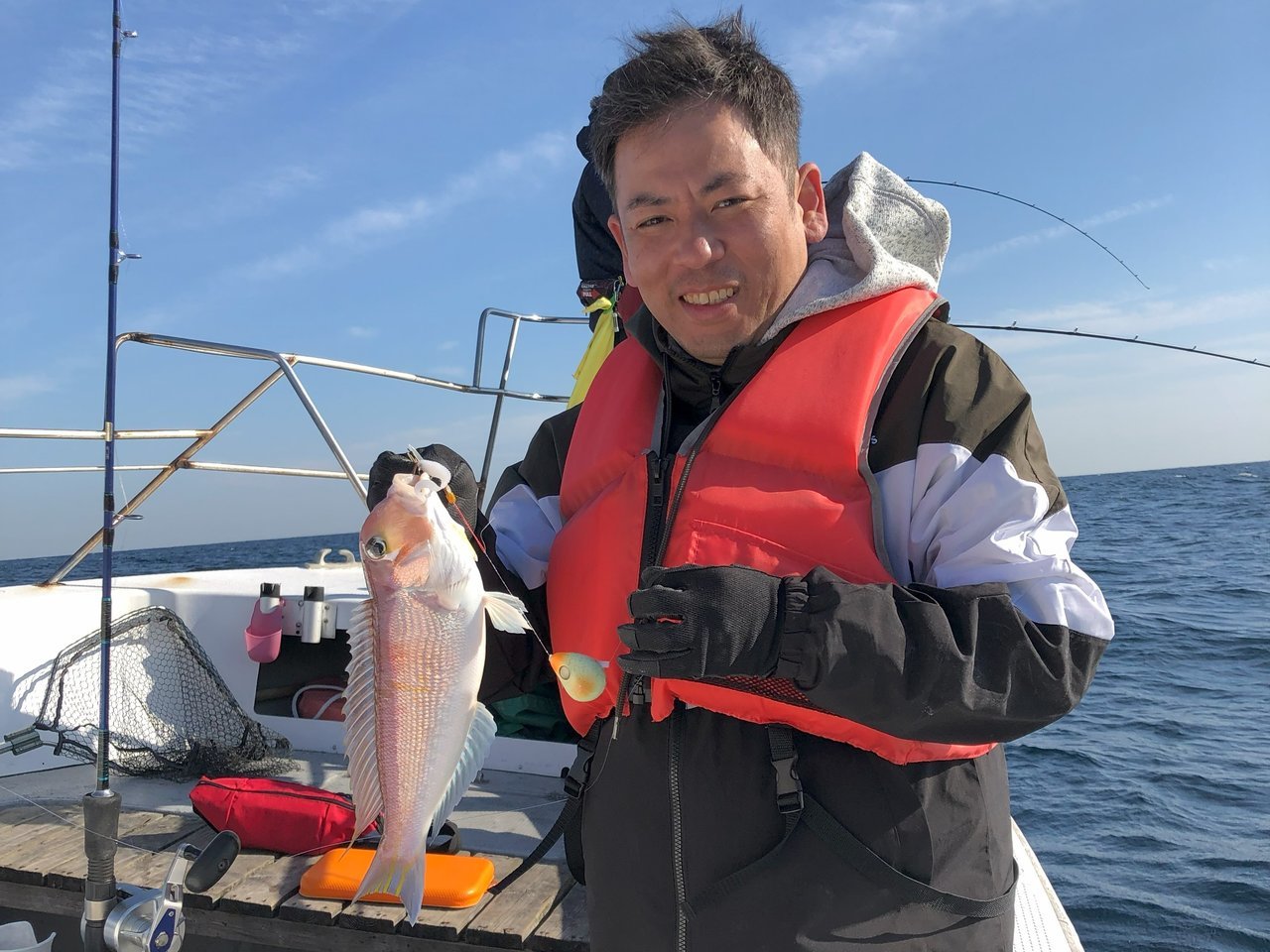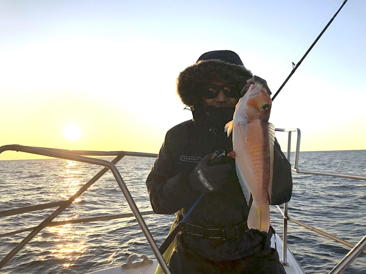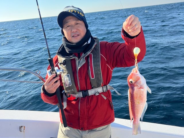 12月水温も下がり出しアマダイ狙いで水戸SBSフィッシングガイドさんで出船!ポイント到着水深83mからで150g鯛ラバ投入。直ぐに同行メンバーがヒット!40cmクラスの良型を見事ゲットして期待大!しかし底潮動かずポツポツとしたアタリ・・・。流しながら鯛ラバを落としているとフォールで強烈なアタリ!青物?慎重なやり取りで水面近くまで浮上し魚影はブリクラスでしたが痛恨のラインブレイク・・・。風による船足も速くなり200g~250gと鯛ラバを変更して底取りを行う。外道で真鯛、ホウボウ、イナワラクラスでした。ユニットのフックにトレーラーとしてケイムラ、グローなどワームを付けると効果があります。食べても美味しいアマダイ釣りチャレンジしてみて下さい。