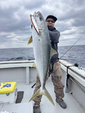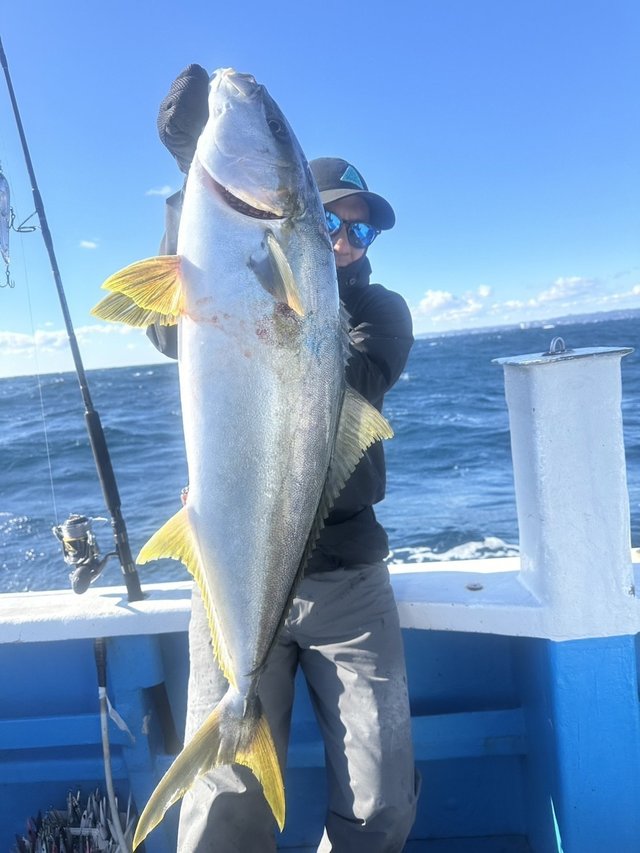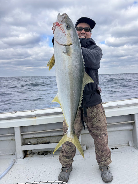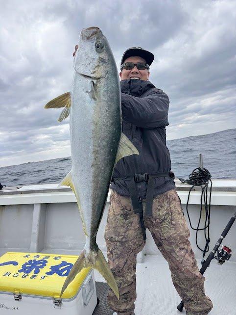 時化後の良い感じのウネリでしたが、潮が動かず渋い状況。良い状況のポイントを探し走りまわっていただき、船中ポツポツ釣果。イワシがベイトになっているポイントで、スイミング系のルアーで連発。何とか9キロ頭に3本キャッチしました!船中アベレージは低めで10キロオーバーは1本。さすがは一栄丸!渋い中でしたが全員安打で釣らしていただきました。