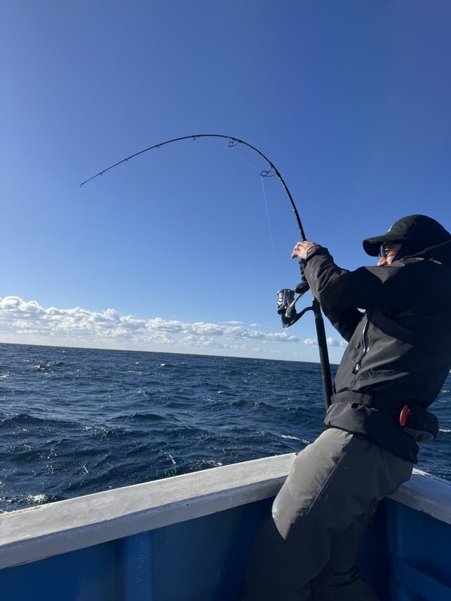 港はそうでも無いように見えましたが沖は結構荒れている様子でしたがギリギリ出船出来るという事で約7:30頃に出船。港を出ると想像以上の波でまるでアトラクション(笑)酔う覚悟で気をしっかりと持つ!!ポイントに到着し、早々にワラサクラスをキャッチ!しましたが魚の血抜き作業をしている最中に船酔いでダウン。そして、回復したと思いきや他の方とお祭りをしてライントラブルに寄り、またも船酔い復活(笑)アネロン2発目を入れて、少し仮眠すると完全復活!PRノットを組み直して、いざ後半戦スタート!!