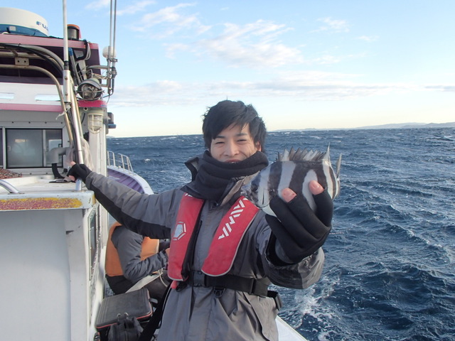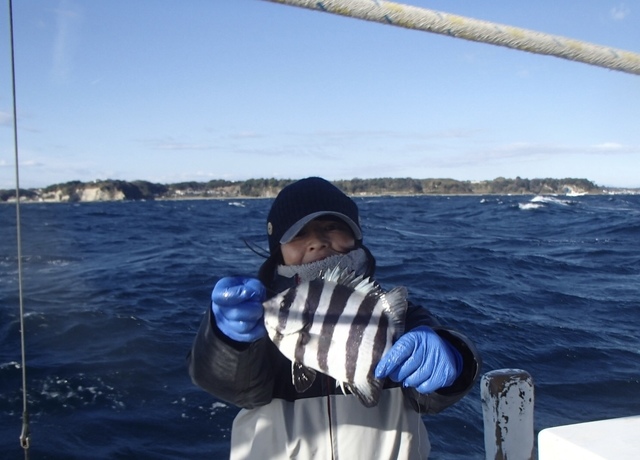 今期1回目の石鯛五目へ行ってきました。船宿は松輪間口港の健洋丸さんです。剣崎の石鯛五目はポイントが狭く、健洋丸、育丸、利一丸の3つの船宿しか出船しておらず、全て仕立て船なので敷居が高い釣りです。港に到着し準備をはじめますが、船が我々以外一切おらず、時化で出船中止したようです。よって狭いポイントも我々の貸し切りとなりました♪定刻の7時に出船すると沖は北風12m/sの爆風、ハリスも空中を舞ってしまい釣り辛いことこの上なし。しかし魚の活性は高く1投目から魚信ありますが、釣れたのはアイゴ…そこからアイゴ地獄が始まりました。その間にもイサキ、カワハギなど色々な魚が釣れ賑やかになってきました。イナダは良い引きを楽しませてくれました。陽が高くなってくると石鯛も顔見せ始め、数が伸ばせました。アジが1匹だけ釣れたので、直ぐに泳がせのタックルをセットし海底へ送り込むと着底する前に青物が食ってきました!良い引きをしながら上がってきたのは5キロのワラサ、泳がせのエサがあればもっと楽しめたのですが、エサが釣れませんでした。同乗の仲間が船酔いでダウンし寒さで低体温も心配だったので12時早上がりし終了となりました。しゃくって誘う五目釣り、攻める釣りなので釣った時の充実感も高くおススメの釣物です、シーズンは12-2月まだまだ楽しめますよ。