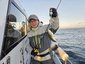 水深75mジグは200gでスタート。うーん潮は流れていない。早々に1本サンパクサイズが船中上がるも後が続かない。ジグのタイプ・重さをとっかえひっかえしながらとにかくしゃくり続ける。水深も少し浅めに55m。ようやくヒット。サンパクサイズだが嬉しい1匹。船長に船のイケスに運んでもらい、釣り再開。立て続けにヒット。同サイズ。同行のお客様にもヒット。しかしその後続かず。風が吹いたタイミングでもう1本追加して終了。