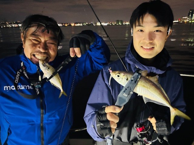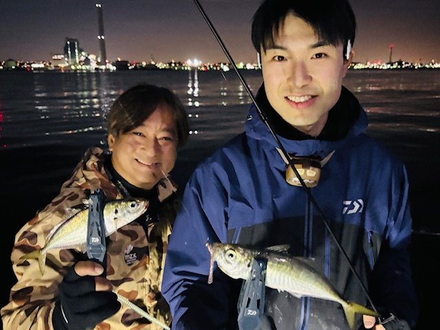 草加バイパス店中里です!今回はボートアジング初挑戦&2回目のお客様と「21style」さんへ行ってきました。当日は無風と初挑戦にはピッタリなコンディション♪案の定スタートからサクッっと入魂(^^♪ナイスなサイズも多く中層メインに3人共イレグイ状態を堪能。移動し次のポイントもアジは盛り盛り!お客様は船の前方で浮いてるアジを狙い私は後ろでボトムベッタリにいるアジを狙いました。こちらは更に良型主体で良く引きます。ボトムのアジはタクキャプテンの必殺「抜きトントン」が炸裂し連発!その後もあちこち回っていただきお客様も大満足♪アタリも徐々に減ってきたところで時間になりました。あまり秋らしくないまま冬へ!?といった感じですがアジはたくさんいましたよ~!!