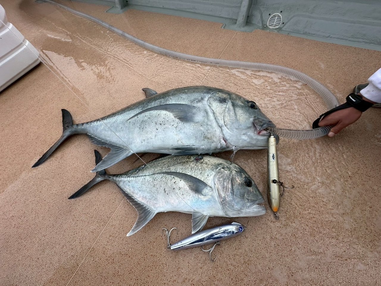 因みに同船者のGTは18Kg。賢い大型はやはりウッドプラグが強いようです。