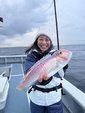 当日の朝はそこそこのうねりがあり、若干船酔いしながらも一先ずの一匹をキャッチ!