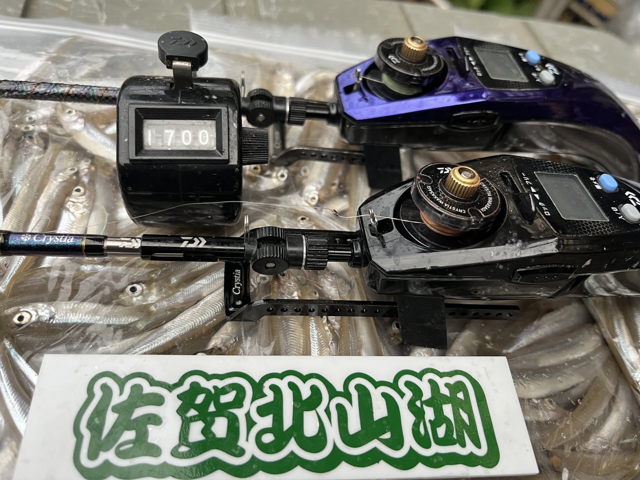 先日!釣行した時におチビちゃんワカサギに悩まされたので今回はマッタリのんびり良型探しの釣行!ボートアンカーを下したのは北山湖【北湖】の61番展望台下!水深9m程の湖底から4m程立ち上がった魚探反応の7m付近に仕掛けを下すと良型炸裂!ただ以前の様な仕掛けを降ろせば【爆】的に釣れる感じではなく丁寧な誘いで僅かに穂先が揺れる渋いアタリを合わせる釣り方が良くこの「掛ける」釣りが本来のワカサギ釣り!※渋くなればなる程!血が騒ぐまさにドMな釣り(笑)魚探に映し出されている画像から秋特有の「ターンオーバー」と水温が徐々に下がって来ているのが原因と思われます!この「掛ける」釣りで良型を揃えていたのも束の間!お昼過ぎからおチビワカサギ君に入れ替わりましたが終わってみれば17束(1700匹)渋くても【爆】な北山湖!こんなに釣れる湖は全国のワカサギフィールドの中でも間違えなくNo1ですよ!週末ご家族やカップルで出掛けてみませんか(^^♪
