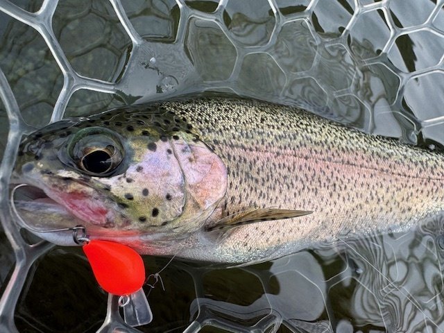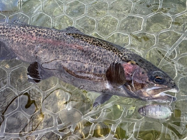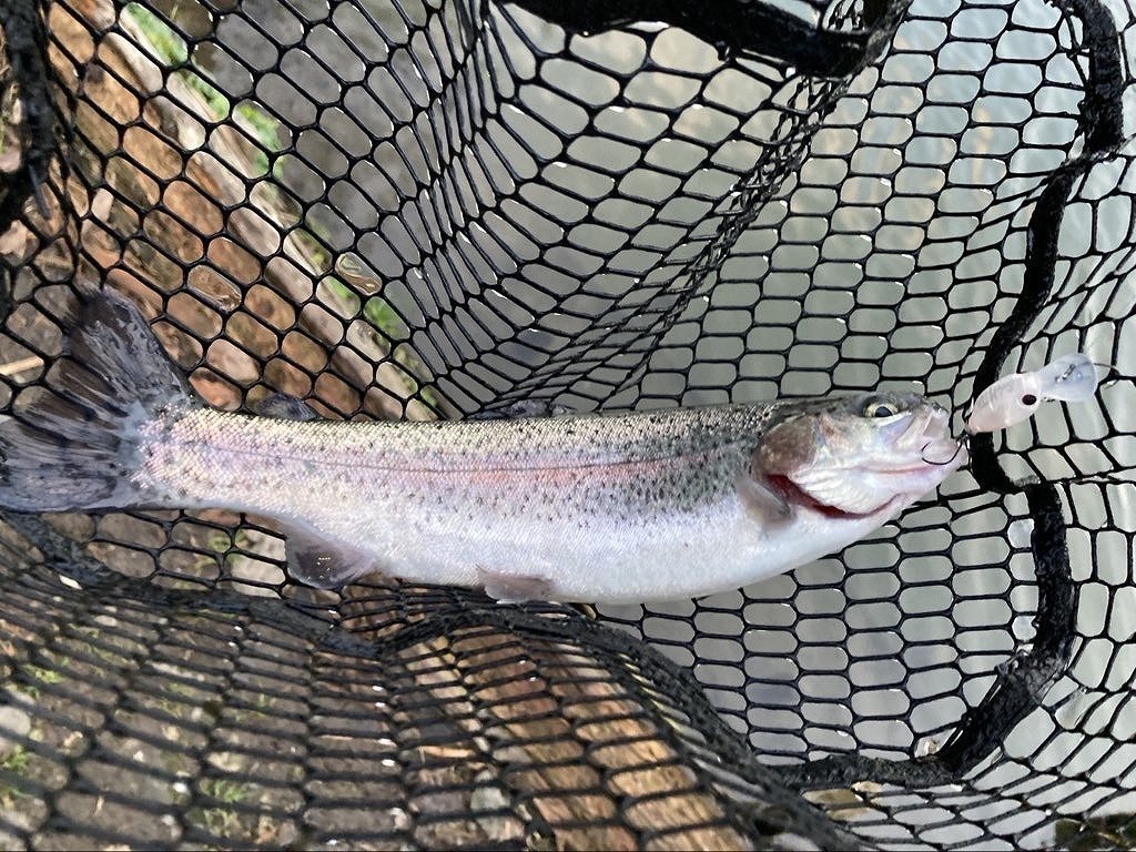 久しぶりにジョイバレー行ってきました!年始明けの平日でしたが多くのお客様で大賑わい!魚影は濃いのですがなかなか難しい日でした。(見えるのに釣れないなんて最高ですね…)久しぶりにタイイングしたフライを持参しフライも楽しみましたが、まったく当たり出せず…。一緒に行った大山さんに一工夫加えて頂きやっと安定してアタリが出る様に。日が沈みかけてから急に活性が上がりポツポツとヒット。フライもルアーもバイトが浅く小さく、マイクロスプーンをデッドスローで巻くとぬめっとした極小あたりが。集中して掛けに行かなきゃいけない状況に大興奮しました!!!