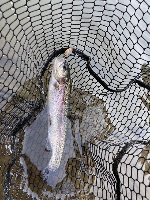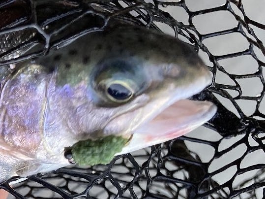 ぼちぼちニジマスを釣ったところで