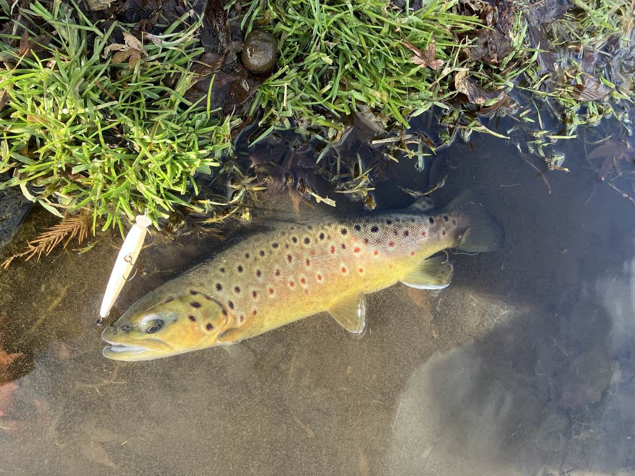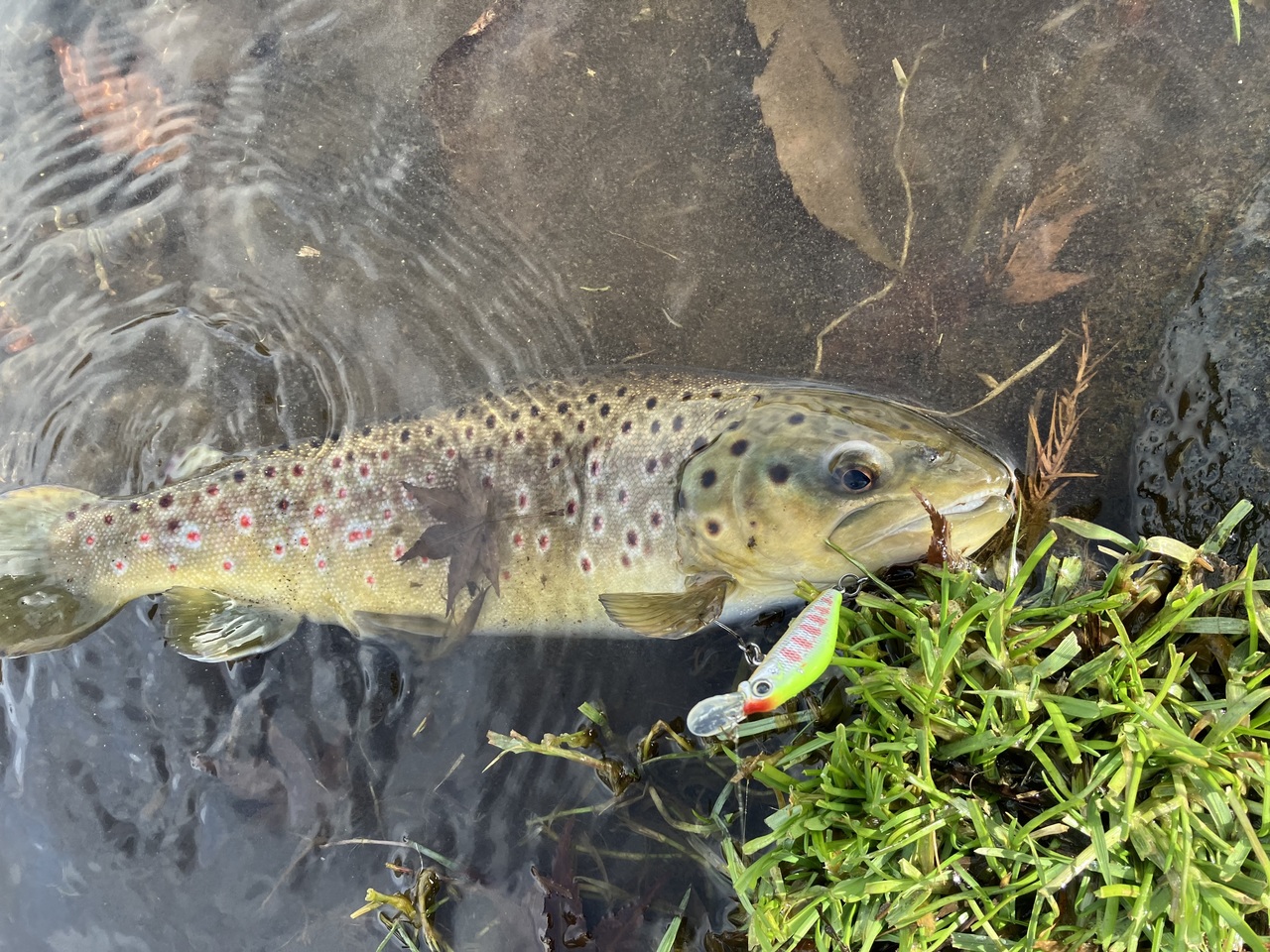 数匹釣るとバイトが出なくなってしまうので、Dインサイト44とローテーションしながら同じパターンでポツポツ釣っていけましたが、釣れる魚は全てブラウントラウト