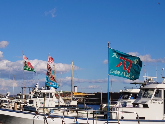 船上もツルツル。細心の注意を払って準備します。いざ出船~向かう釣り場は観音崎沖!たくさんの船が密集してました。