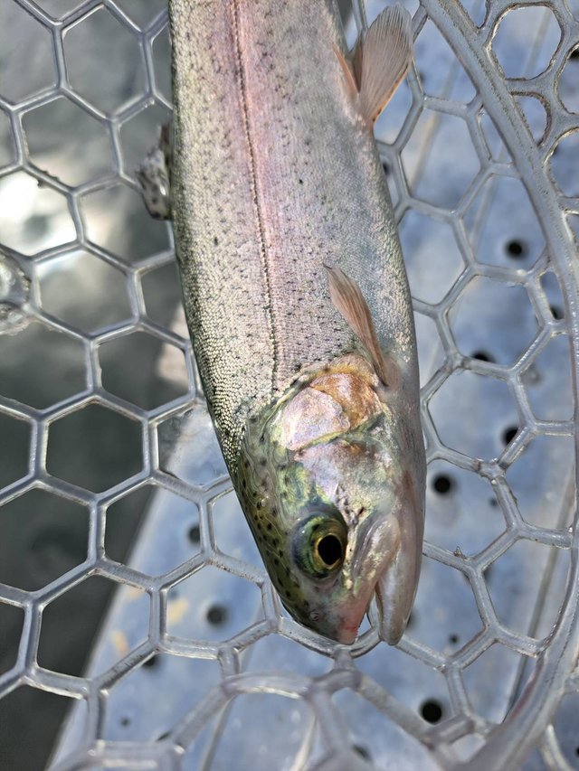 のんびり10時過ぎに到着。到着直後から川奈部がファットモカJrで連発しているのを横目に準備開始。手始めにさかさニョロを投げると反応はあるもののなかなか口を使ってくれず。周りを見るとこの日はピンク系のカラーが好反応なようでカラーをピンク系に変更すると一撃。元気なニジマスが釣れてくれました。この日は中層~表層での反応が良く、ボトム付近での反応は薄い日でした。各種プラグやスプーンでも一通り釣り、あっという間の3時間が終了。久々のトラウトを満喫した一日でした。