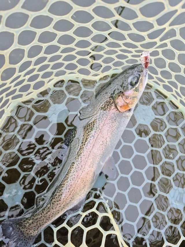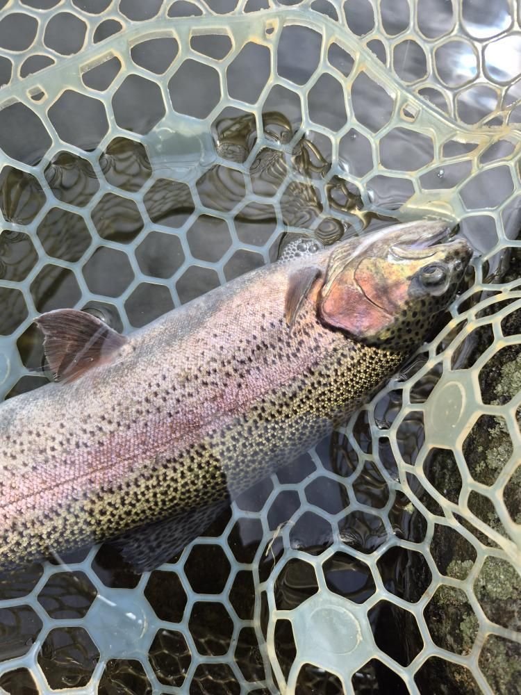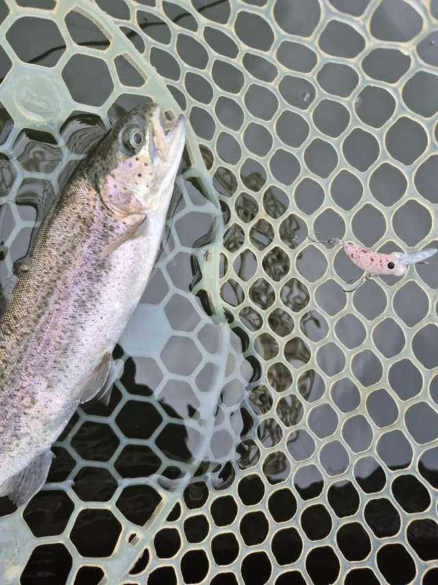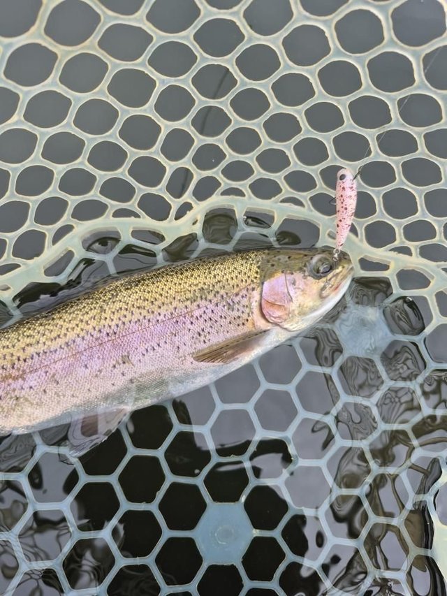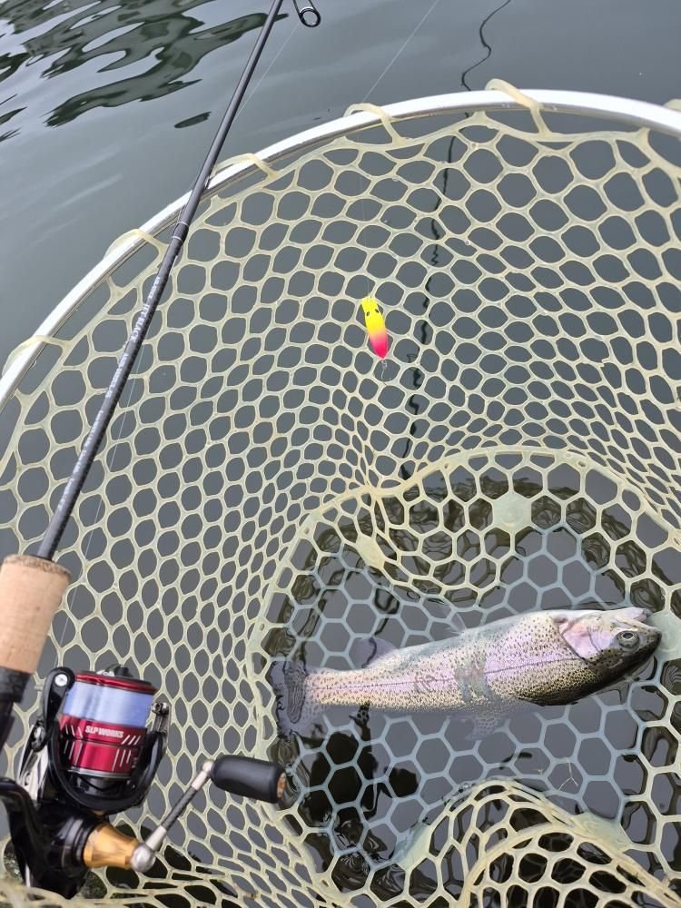再びルアー池へ戻り、丁度放流が入ったのでスプーンで何本か釣って終了としました!