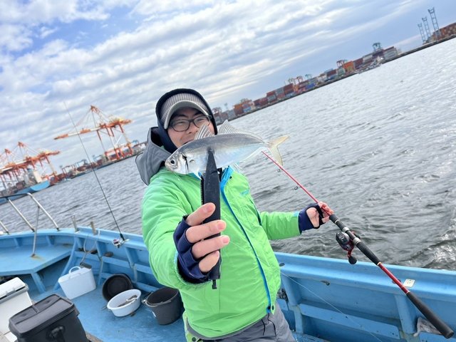 久々に海の船釣りをしたいと思い、林遊船さんのライトアジ船に乗ってきました。前日までの釣果情報を見ていると安定して数釣りを楽しめる感じでした。ところが、横浜方面まで各ポイントを攻めるも反応が全く無く、これはボウズになるかもと思っていましたが、船長の早い判断で東京湾を渡り、海ほたるまで行くとやっとアタリがきました。しっかり掛けて、ゆっくり巻いて来ると25センチ位のアジが釣れてくれました。タナを意識してシャクっていくと連発しました。小気味よいアタリが楽しく、帰ってきてからは美味しく楽しめるので、良いタイミングでもう一度行きたいと思います。