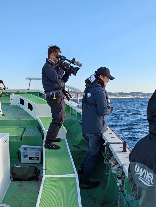 今日はオーナーばりのテレビ番組「夢釣行」の撮影があるというので