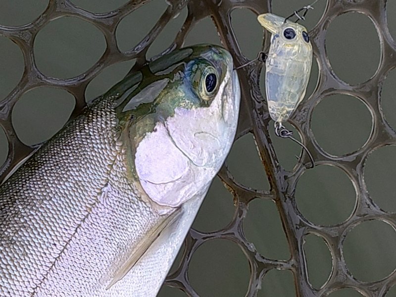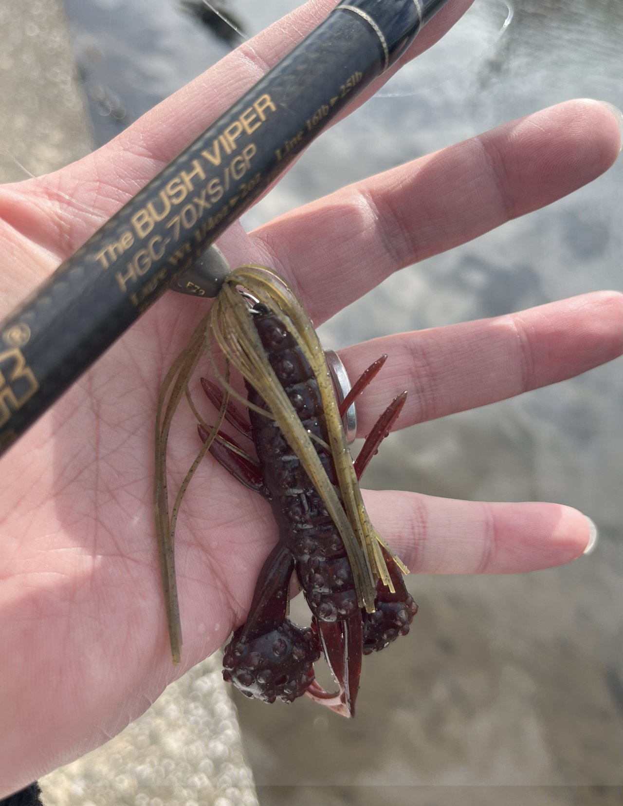 そのあとは【reins】ソルトワームや【ボトムアップ】“HurryShrimp(ハリーシュリンプ)3.0インチ”に1.8gのDSで連発!