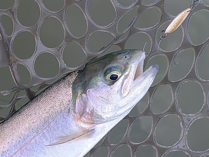最初は表層ちょい下から中層を小型スプーンやクランクで狙いました。