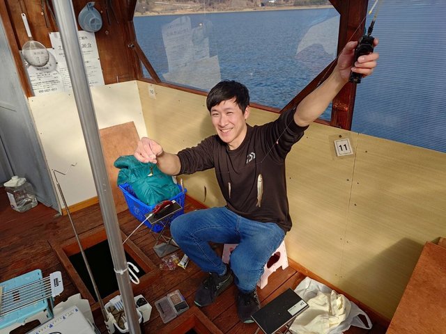 今回のワカサギは河口湖。田村店長と、お客様にお誘いいただきまして久し振りに河口湖です!今回は数釣りよりも『楽しもう!』をモットーに釣りをいようと決めておきました!早速群れが入ります。。。釣れますが多点掛けは連続しません。食い気がないのか、サイズが小さいのか?その後もポロポロと拾い釣りにはなりましたが楽しい釣りになりました!